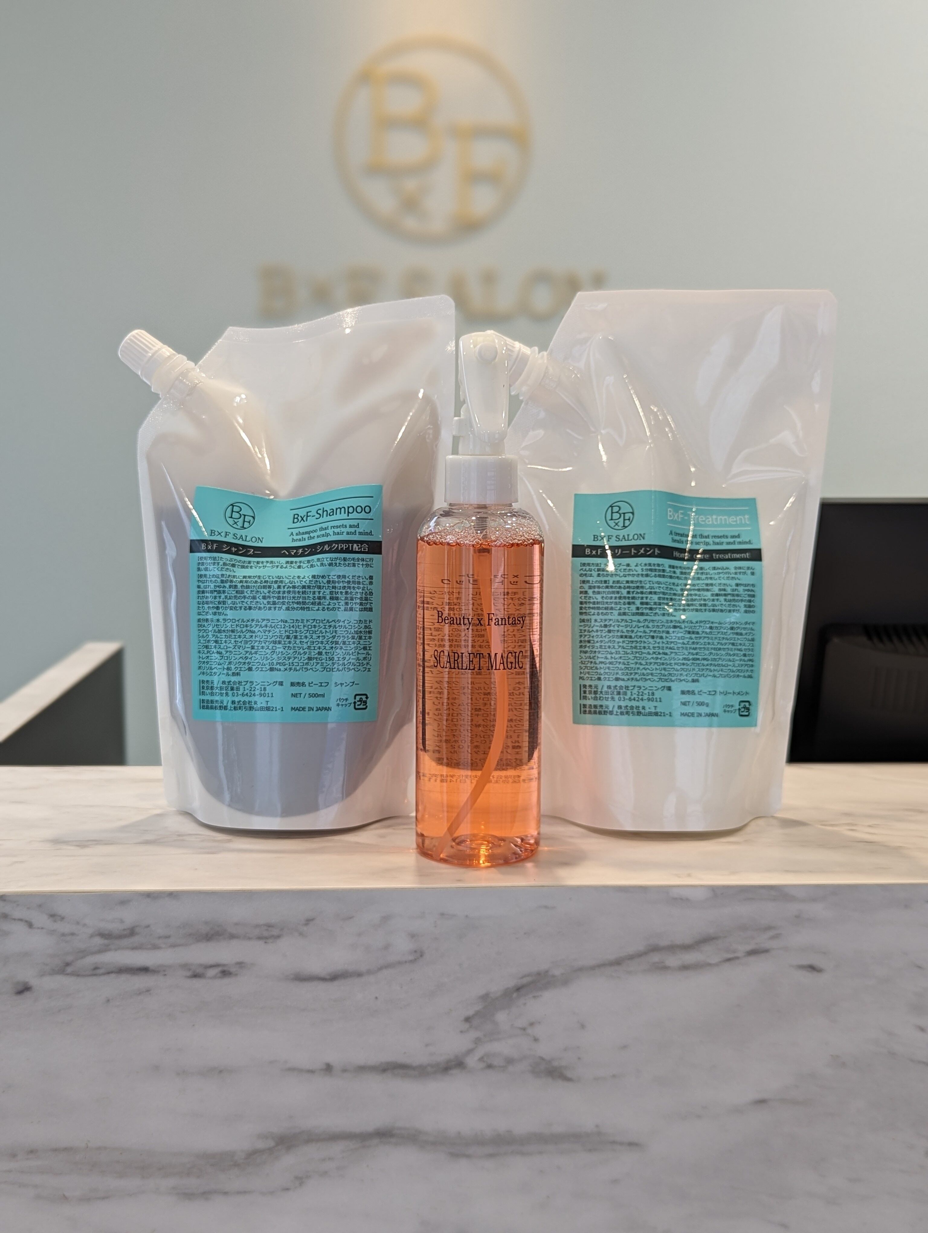 BxFシャンプー、BxFトリートメント、スカーレットマジックのセットです。